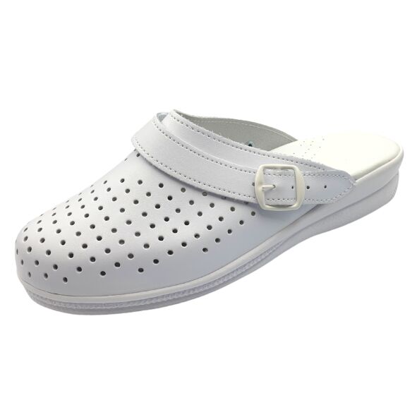 Sabot damski wykonany ze skóry naturalnej, na profilowanym wkładzie zapewniającym odpowiedni komfort stopy.