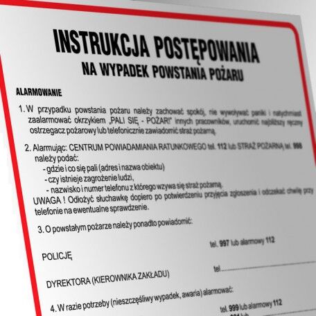 Instrukcja postępowania na wypadek pożaru lub innego miejscowego zagrożenia