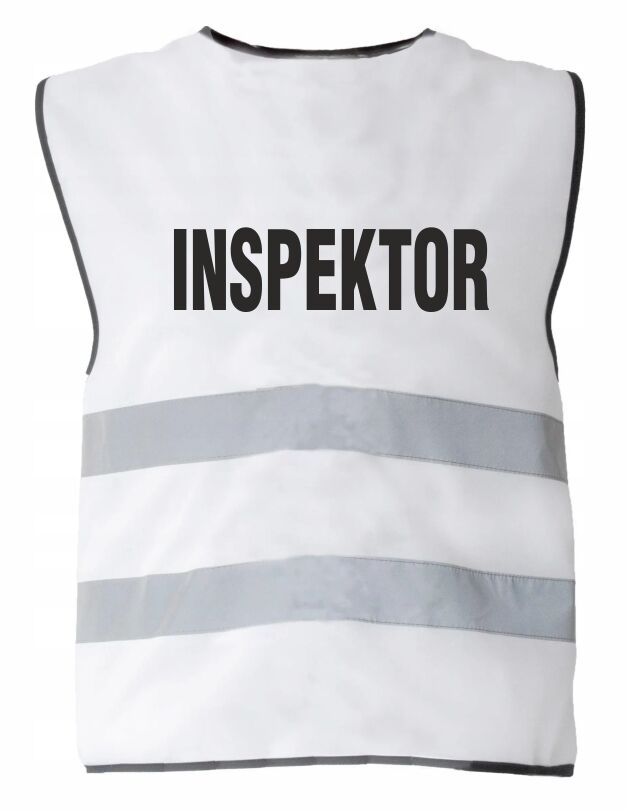 Kamizelka odblaskowa Biała z nadrukiem INSPEKTOR