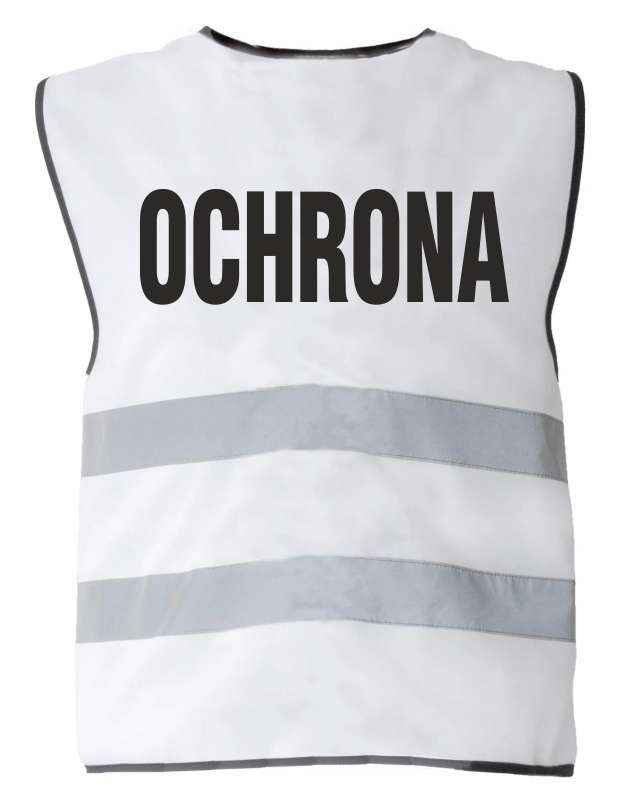 Kamizelka odblaskowa Biała z nadrukiem OCHRONA