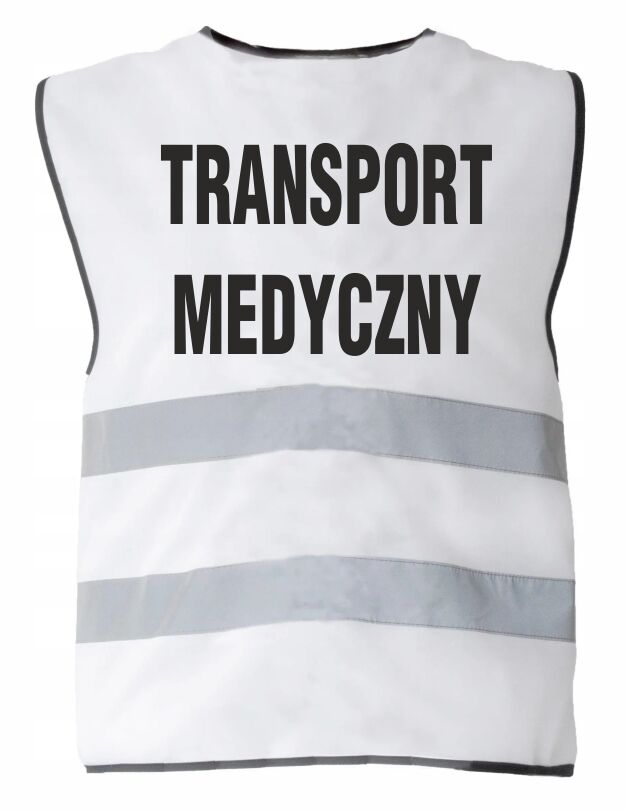 • 11 Kamizelka odblaskowa biała nadrukiem TRANSPORT MEDYCZNY 34,11 zł brutto