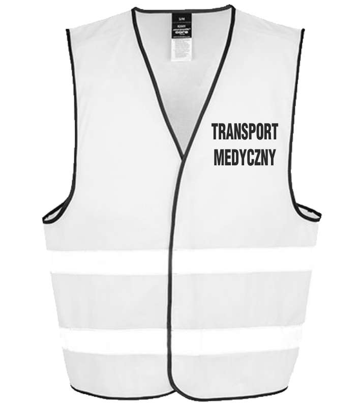 Kamizelka odblaskowa Biała z nadrukiem TRANSPORT MEDYCZNY