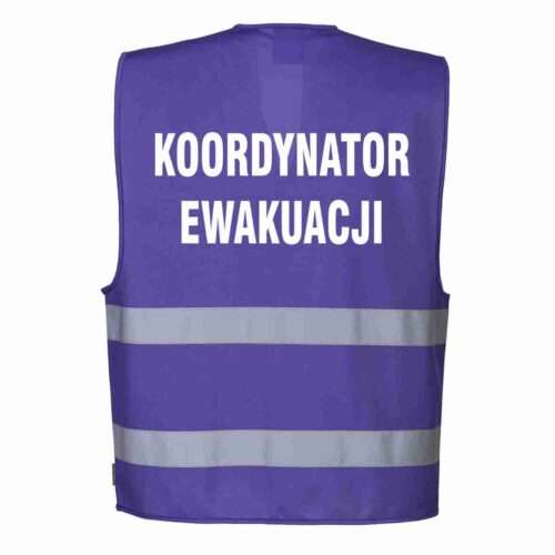 Kamizelka odblaskowa filoetowa z nadrukiem KOORDYNATOR EWAKUACJI RozXXL/3XL