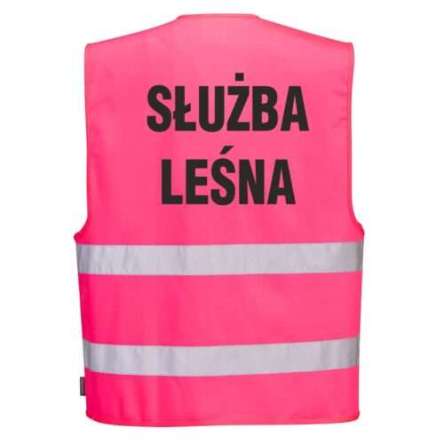 • 1 Kamizelka odblaskowa PORTWEST różowa z nadrukiem SŁUŻBA LEŚNA 34,11 zł brutto