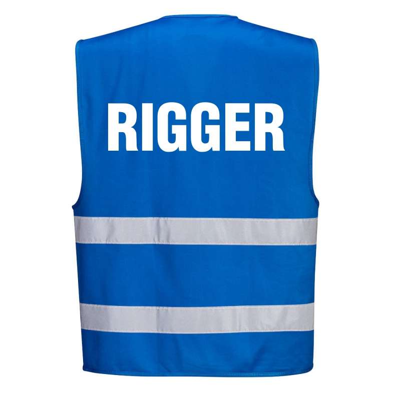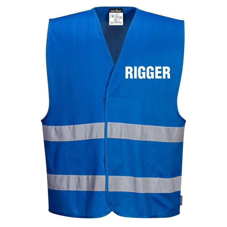 • s476n_01c Kamizelka odblaskowa PORTWEST niebieska z nadrukiem RIGGER 34,11 zł brutto