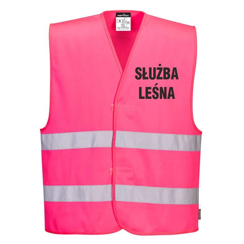 • 1 Kamizelka odblaskowa PORTWEST różowa z nadrukiem SŁUŻBA LEŚNA 34,11 zł brutto
