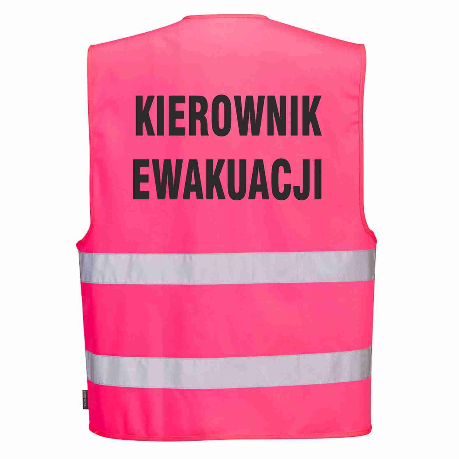 Kamizelka odblaskowa różowa z nadrukiem KIEROWNIK EWAKUACJI