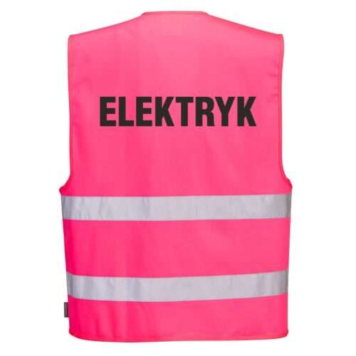 Kamizelka odblaskowa PORTWEST [F474] różowa z nadrukiem ELEKTRYK