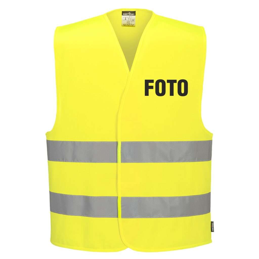 Kamizelka odblaskowa żółta z nadrukiem FOTO
