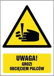 Naklejka Uwaga! Grozi obcięciem palców 10x15cm