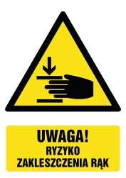 Naklejka Uwaga! Ryzyko zakleszczenia rąk 10x15cm
