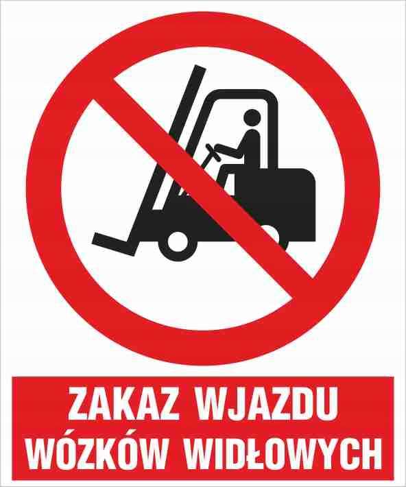 Naklejka ZAKAZ WJAZDU WÓZKÓW WIDŁOWYCH 50x60cm + pokrycie laminatem UV