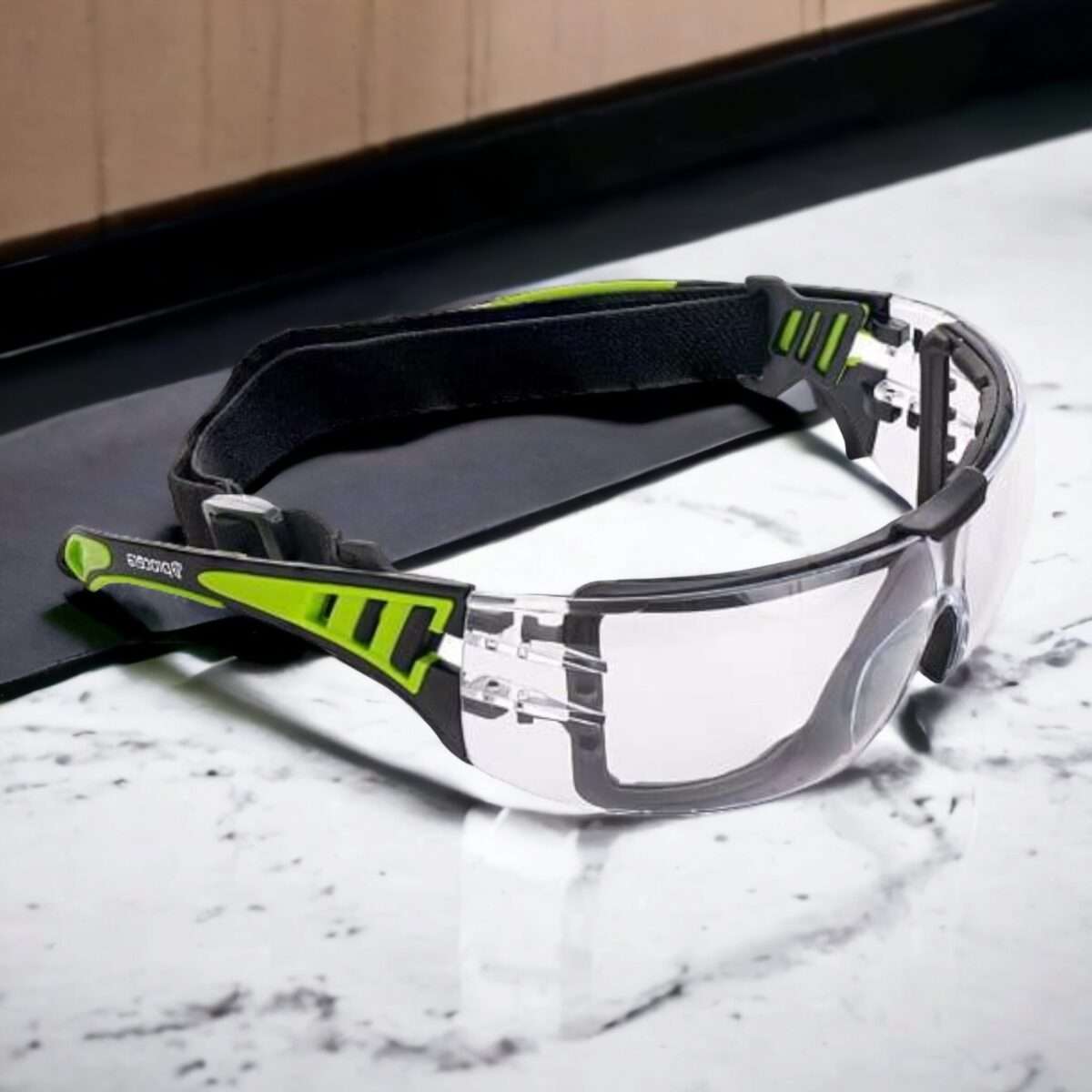 Możliwość mocowania załączonego elastycznego paska, który utrzymuje okulary na miejscu podczas np. dynamicznej pracy czy ruchu. Wyposażone w ramkę uszczelniającą z pianki EVA.
