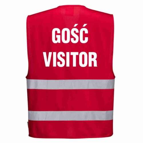 • Kamizelka PORTWEST czerwona z nadrukiem GOŚĆ VISITOR 34,11 zł brutto