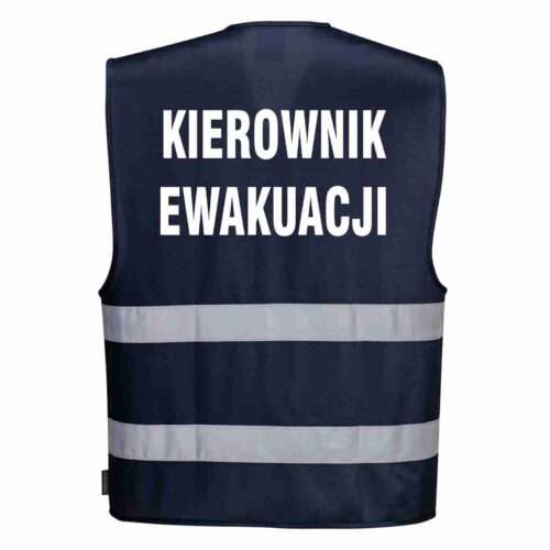 • Kamizelka odblaskowa granatowa z nadrukiem KIEROWNIK EWAKUACJI 34,11 zł brutto