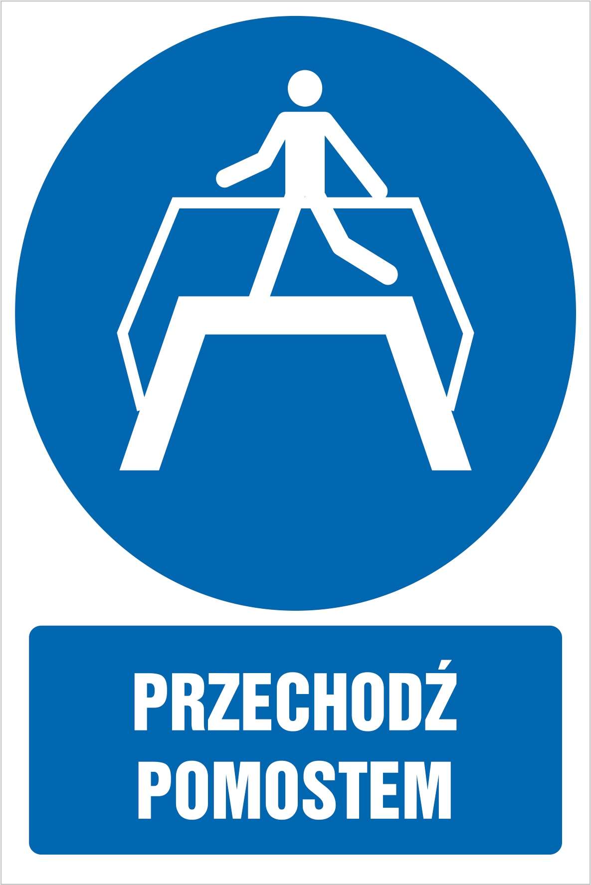 Tabliczka Przechodź pomostem 10x15cm PCV 1mm