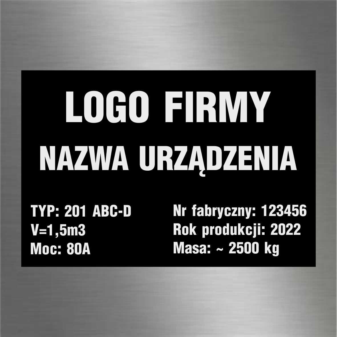 Przykładowe formaty i wzory tabliczki znamionowej wraz z ceną widnieją na stronie głównej produktu.
