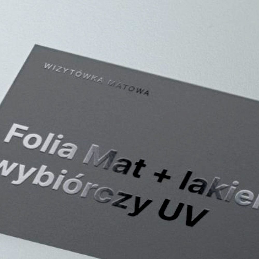 Wizytówki z wybranymi elementami pokrytymi błyszczącym lakierem selektywnym (wybiórczym). Lakier utrwalany jest promieniami UV (ultrafioletowymi). Dzięki niemu można podkreślić niektóre elementy projektu – np. utworzyć błyszczące logo – lub utworzyć nowe elementy, które uzupełnią i wzbogacą wygląd wizytówki. Lakier UV nałożony na folię matową standardową wyróżnia się co można wykorzystać do tworzenia deseni, tekstury itp.