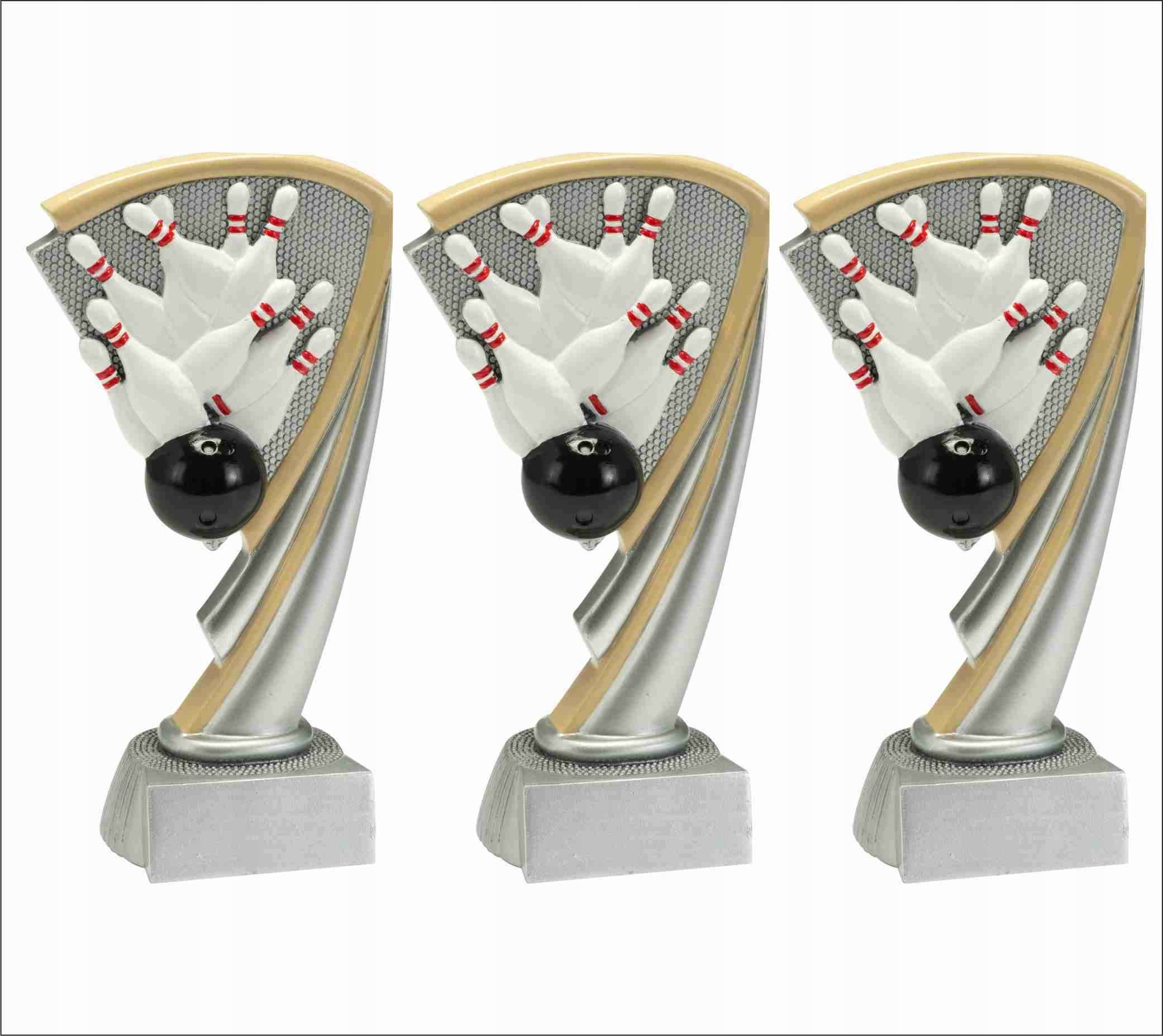 ZESTAW 3 STATUETEK – KRĘGLE – BOWLING, puchary 3szt. + grawer! Nagroda, zawody.