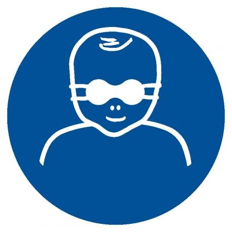 Znak BHP – Nakaz ochrony wzroku dzieci przyciemnianymi okularami ochronnymi