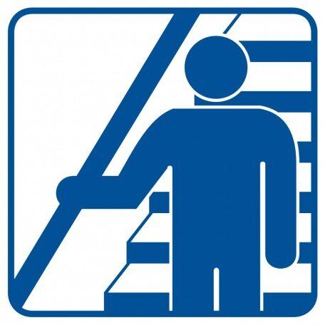 Znak BHP – Trzymaj się poręczy schodząc i wchodząc po schodach