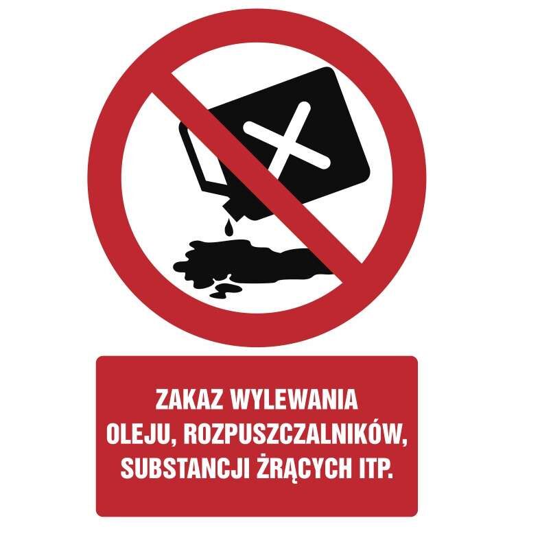 Znak BHP – Zakaz wylewania olejów, rozpuszczalników