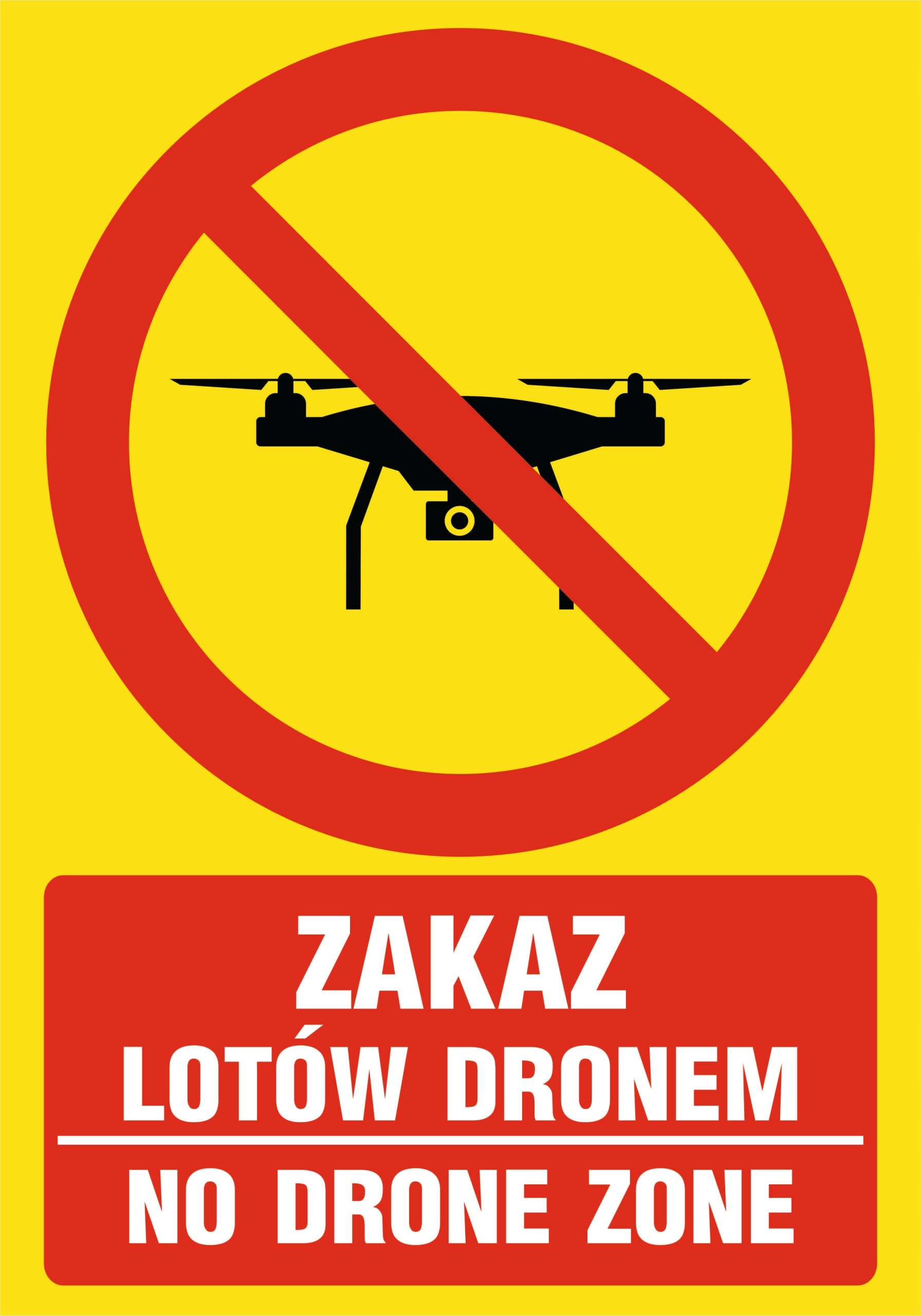 Znak ZAKAZ LOTÓW DRONEM – NO DRONE ZONE