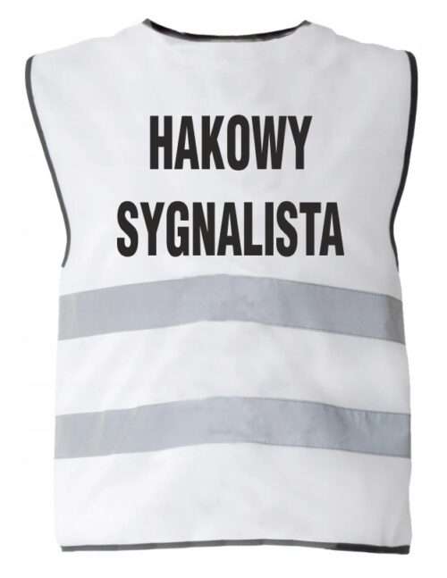 Kamizelka odblaskowa biała nadrukiem HAKOWY SYGNALISTA