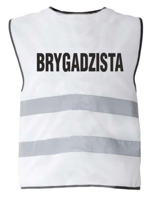 Kamizelka odblaskowa biała nadrukiem BRYGADZISTA