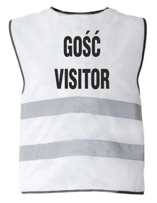 Kamizelka odblaskowa biała nadrukiem GOŚĆ VISITOR