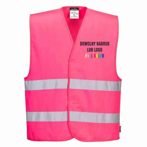 Kamizelka odblaskowa PORTWEST różowa z dowolnym nadrukiem lub LOGO