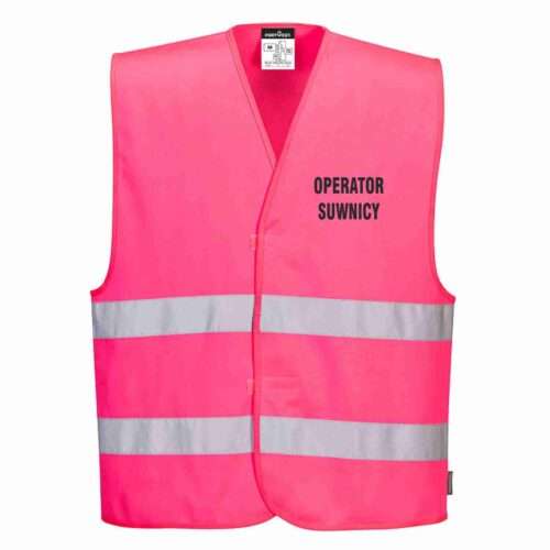 Kamizelka odblaskowa różowa z nadrukiem OPERATOR SUWNICY