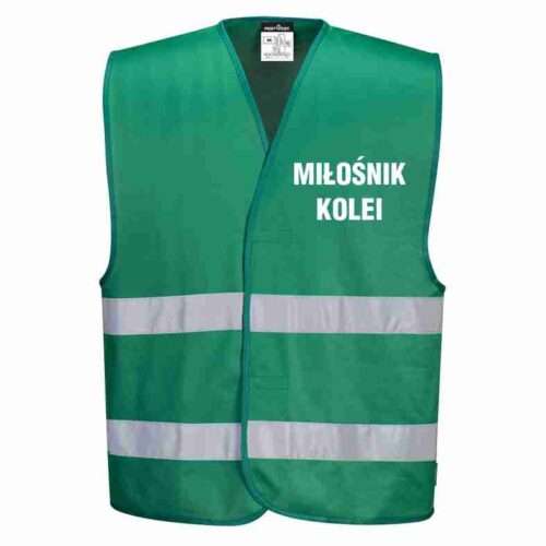 Kamizelka odblaskowa PORTWEST zielona z nadrukiem MIŁOŚNIK KOLEI